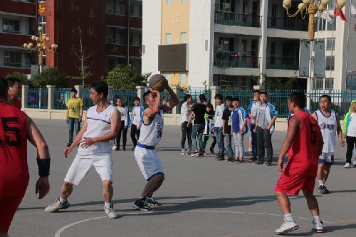 五月十日,晴,温度31°。我校和宝三中学的老师进行了一场篮球联谊赛。比赛是在下午4:50分开始的,比赛场地是沥青场地,当时地表温度达到了约35°左右。但是,双方队员不畏酷暑,在场上你争我夺,进攻、防守、布阵,各展其才,为了能将球打进。场下的拉拉队里三层外三层,无论那队进球,都会给予最热烈的掌声和呐喊声,对球员也是一种激励,球员们也为大家奉献了一场高水平的球赛。在此深深的感谢宝三中学的老师们来访!