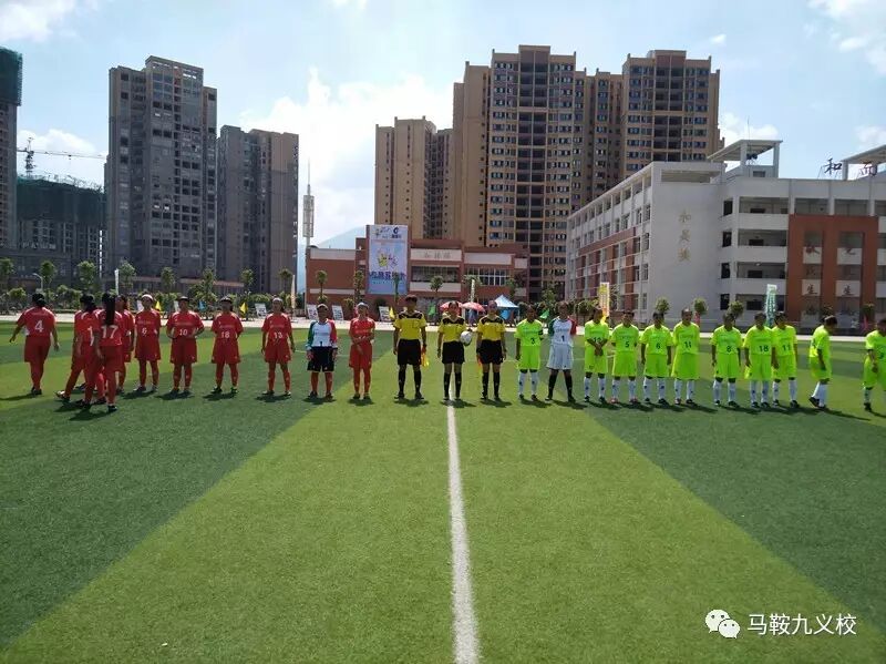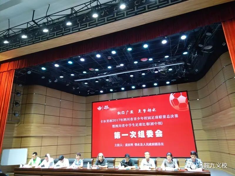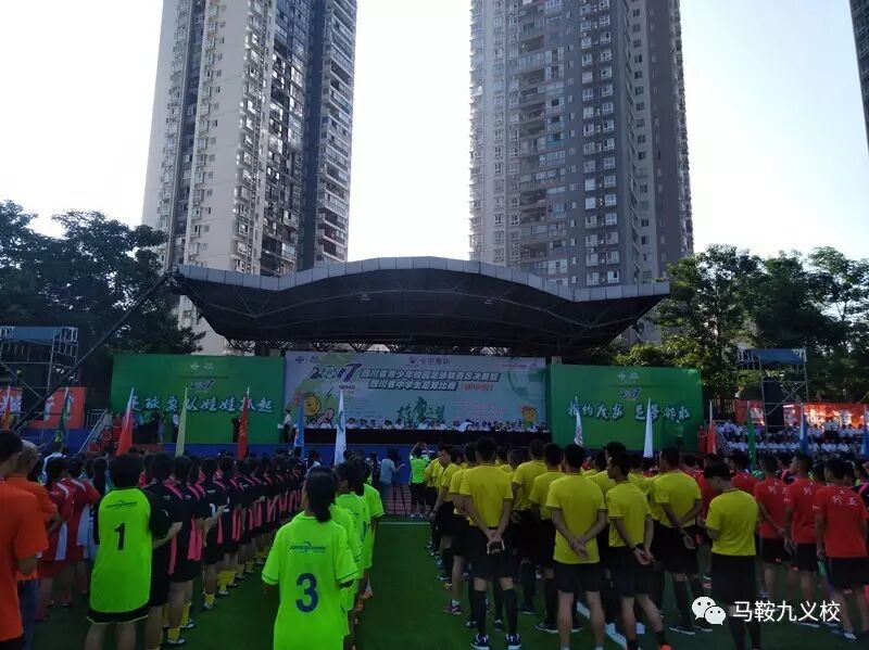 2017年7月20—28日卡尔美杯四川省青少年校园足球联赛(初中组) 总决赛暨四川省中学生足球比赛在广安邻水胜利召开,来自全省21个市州46支球队的1000余名足球健儿相约广安,足球梦想点燃邻水。资阳市雁江区马鞍九义校代表资阳市参加比赛,代表队由马鞍校18名运动员、4名老师组成,学校体育教研组长杨序辉带队统筹,负责学生旅途和参赛的安全。