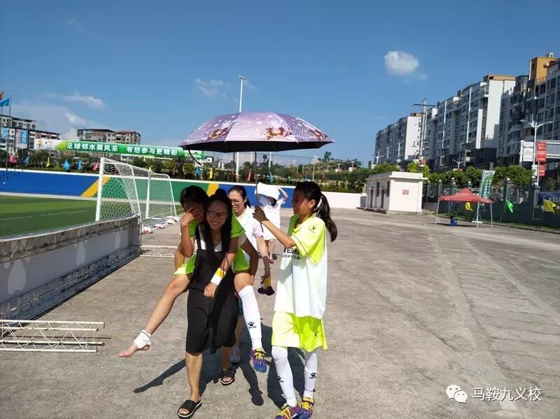 我校女足被抽在称为“死亡之组”的B组,有江油华丰、达州中学、米易二中、自贡六中、南江中学代表队。马鞍女足在7天的艰苦奋战中,很好地展示了马鞍校女足一贯敢打敢拼、顽强拼搏、团结奋进的风采。七场比赛,全抽在了下午3:00比赛的赛程。每天烈日当头,艳阳高照,40几度的超恶劣高温,以及一场比一场艰苦的对决,还有每场下来不断增加的队员受伤,都是我们必须面对和克服的困难。队员们没有退缩和惧怕,在教练组的鼓励下,她们选择了迎难而上,发扬了马鞍精神,坚持比赛到最后。教练组、替补队员场下更是加油助威,积极递水,休息时为队员送上爱心的凉风,为踢好比赛做好后勤保障。