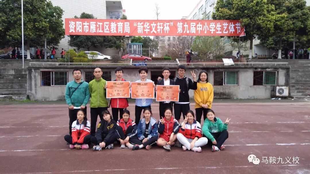 马鞍校获得雁江区“新华文轩杯”第九届中小学生田径比赛“优秀组织奖”,初中组以100分获得田径比赛团体总分第三名,小学组以25分获得田径比赛团体总分第六名。