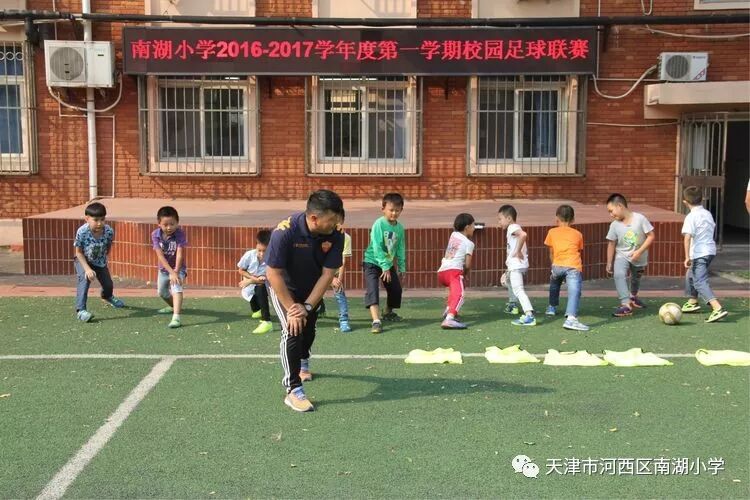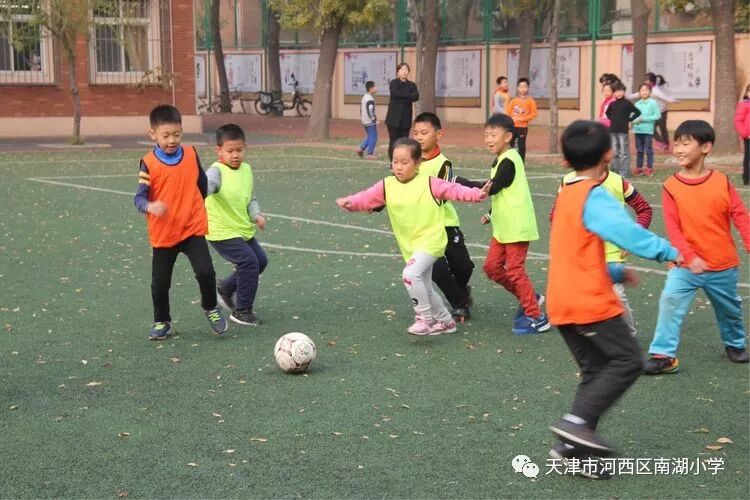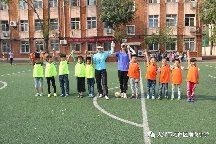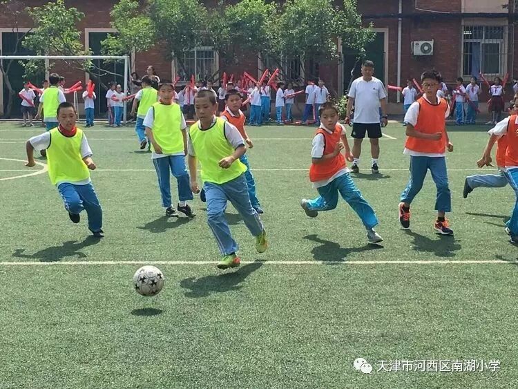 作为全国青少年校园足球特色学校,中超联赛天津权健足球俱乐部青少年训练基地,南湖小学的特色体育校园足球在上级领导和政府的关心和支持下,学校通过丰富多彩的足球活动,打造了精彩纷呈的足球文化,践行了"足球从娃娃抓起"的目标,有力地推动了学校的特色体育活动。通过校园足球活动的开展,我们让孩子们了解到了更多的足球知识、掌握了足球运动的基本技能、培养了良好的意志品质。在活动的开展中,我们也积极探索校园足球在学校的教育教学和活动模式,不断完善教育教学和活动的保障措施,有效推动了校园足球活动在我校师生中的广泛开展。