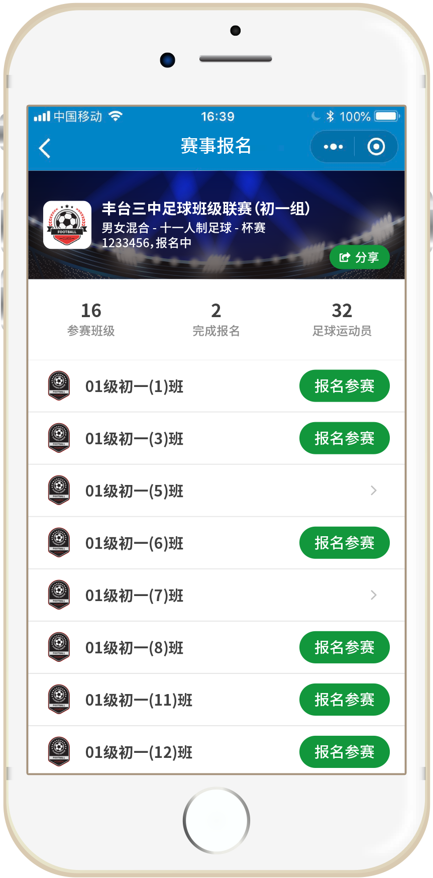 使用微信小程序直接创建赛事。